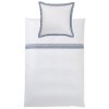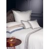 - jemný damašek s ozdobnými modro - šedivými pruhy a sámky na polštáři včetně všité paspulky