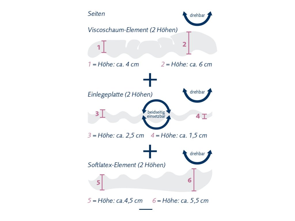 - jádro 3-dílné, visco-elastický materiál, střední vrstva vyjímatelná SOFT LATEX